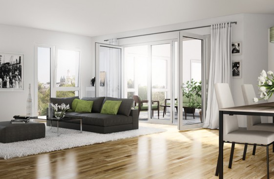 The apartments feature between 44 and 160 m² and are available with two to six rooms. While offering plenty of space and comfort, they also comply with the DIN standards for barrier-free living. The floor plans take into consideration adequate space for circulation and movement with real-wood parquet floors as well as barrier-free access to the main entrances, apartments and underground car park.
