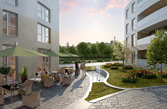 In the heart of spa town Bad Homburg, a complex of 64 spacious, barrier-free service condominiums is being built for senior citizens with an unobstructable view of the Bad Homburg palace.